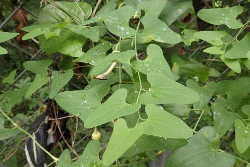 | コメント | 夏にラッパ型の花を咲かせ、この花の形が馬につける鈴に似ているらしい。 また、葉の形が馬の顔に似ているとの情報もあります。 葉は、一見ヤマノイモのような形をしていますが、ウマノスズクサの葉は厚みと光沢があるようにも 思います。 また、地域によって変異もあるようで、葉の形が微妙に違う場合もあります。 葉は対生で、葉の先端は丸みを帯びている。(ナガイモの葉は、先が尖っている) 関東より西で見られるとのこと。 数が少ないのか、滅多に出会うことはありません。 蔓性、食虫植物。 ウマノスズクサは、ジャコウアゲハの食草らしい。 ギフチョウの食草が、ウスバサイシンやカンアオイだったことを思い出す。 出会った回数が少なく、まだまだ謎が多い植物です。 追加の画像は、少し前に羽化したばかりのジャコウアゲハが多数待っていた場所で、ウマノスズクサらしい蔓性の 植物を見かけたので、写真に撮ってきました。 8月中旬なので、時期的に独特の花は無く、実のようなものが残っていました。 そして、ウマノスズクサの新芽とジャコウアゲハの産卵。 |