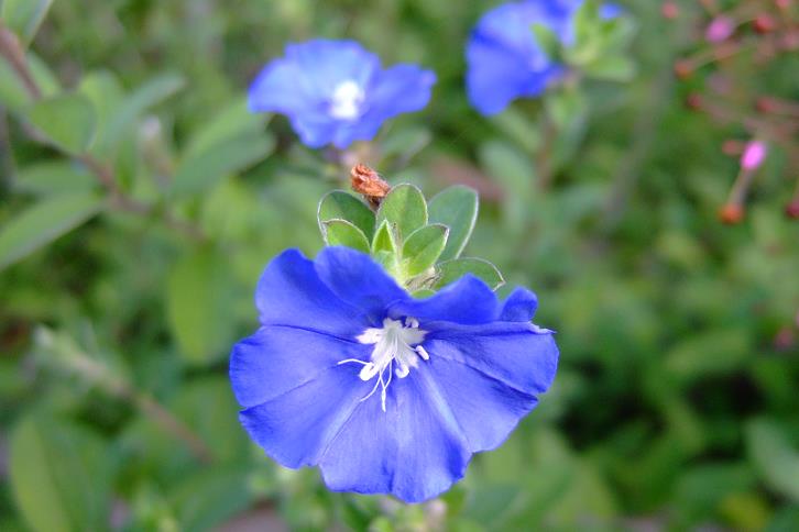 | コメント | アメリカ原産の帰化植物。 ヒルガオ科とのことです。 主に夏の暑いとき園芸畑で見られる。 青いタイプをアメリカンブルー、白いタイプをアメリカンホワイトと呼んでいるようです。 花の大きさは、1〜2cm程度で、地を這うように横に広がっている。 追加の画像の青い花は、花後が目立ち別の花のようにも思える。(2022.9月) しかし、検索しても合致する花が見つからないため、「エボルブルス」で良いのだろう。 |