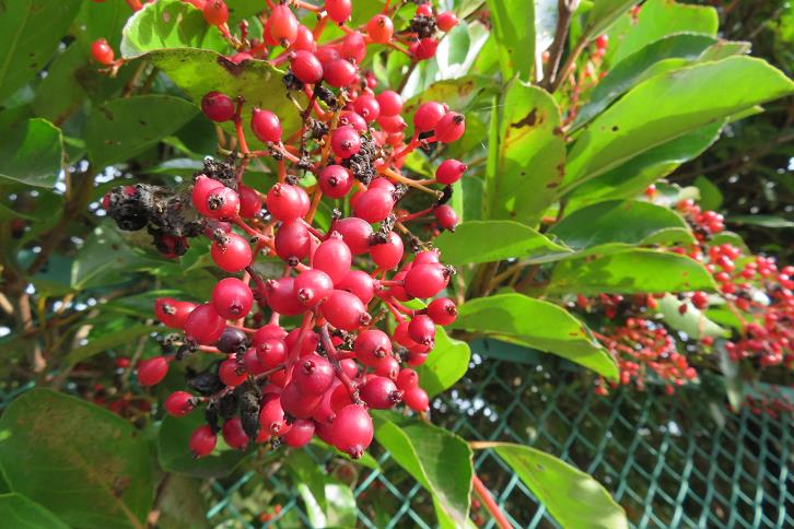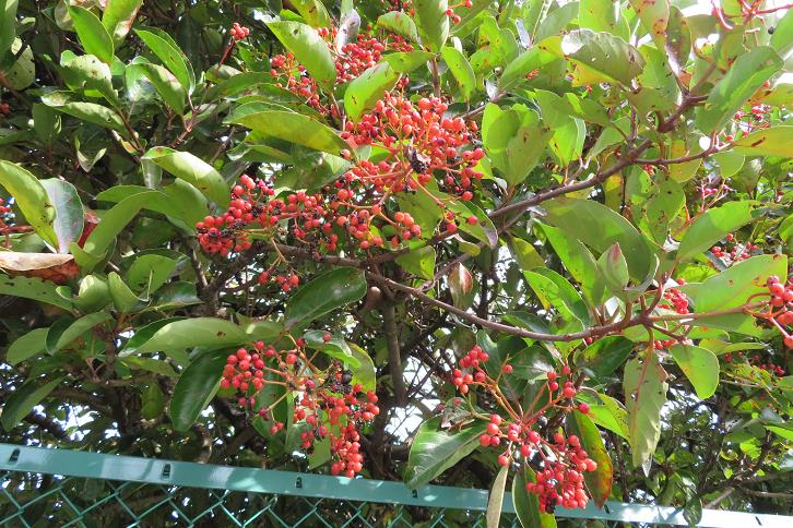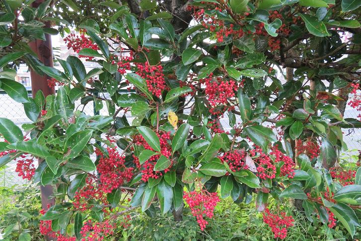 | コメント | スイカズラ科ガマズミ属の常緑中高木。 サンゴに似ているとか。 常緑で、外路樹や庭木として良く見かける。 6月ごろ多数の白い花が咲き、夏の終りから秋にかけて、多数の赤い実がつく。 花は、ガマズミやネズミモチに似ている。 |