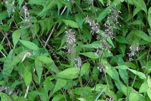 | コメント | 高さ30cm程度で、葉っぱが縮れた笹の葉に似ている。 花は殆ど目立たない存在で、道ばたなどでしばしば出会うが、 見向きもされない寂しい存在です。 花色は白色に見えたり、紫色に光っていたりする。 いずれにしても花色は殆ど感じられない。(→ 緑色) |