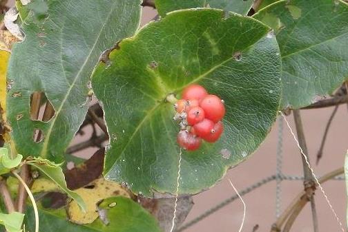| コメント | 赤い花弁の形が独特です。 なんと言っても特徴があるのは、花弁に一番近い葉っぱでその中心が 串差しのように見える。 この葉っぱは、葉っぱなのか萼なのか? スイカズラに属するということで、花の形は似ていますが、花色が異なるので 間違うことはないでしょう。 |