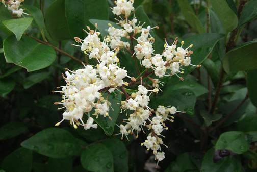 | コメント | ベニカナメモチと同じく、垣根などとして良く植えられている小木。 お花は6月に白い小さな花が咲きます。 実がネズミの糞に似ているからか..? 実は緑色(9月)から次第に黒くなっていくようです。 |