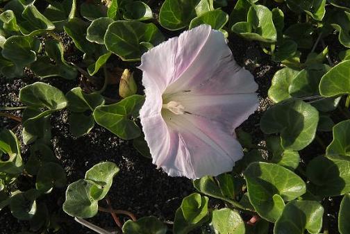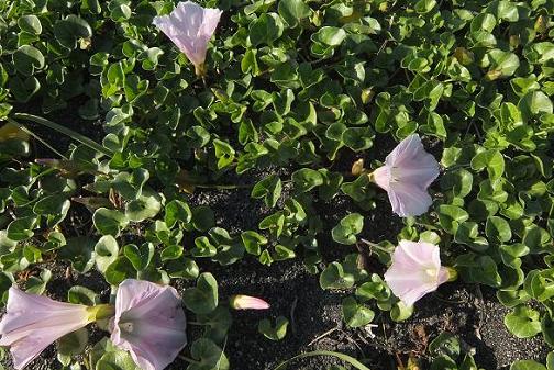 | コメント | 海岸の砂地などに生育するヒルガオ。 花はヒルガオとそっくりであるが、葉は丸い(ハート型)。 葉は厚くて光沢があり、乾燥にも強そうです。 |