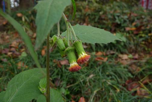 | コメント | 秋頃、紅色の花を咲かせる。 花はうつむき加減に咲いており、花後かと思いそうです。 花後に見られるタンポポのような綿毛が良く目にとまります。 花が少なくなった10〜11月に目立つので、晩秋に撮っていますが、 他の花が多い季節に混じって咲いていたら、見過ごされそうです。 赤くないのはダンドボロギクだと思います。 |